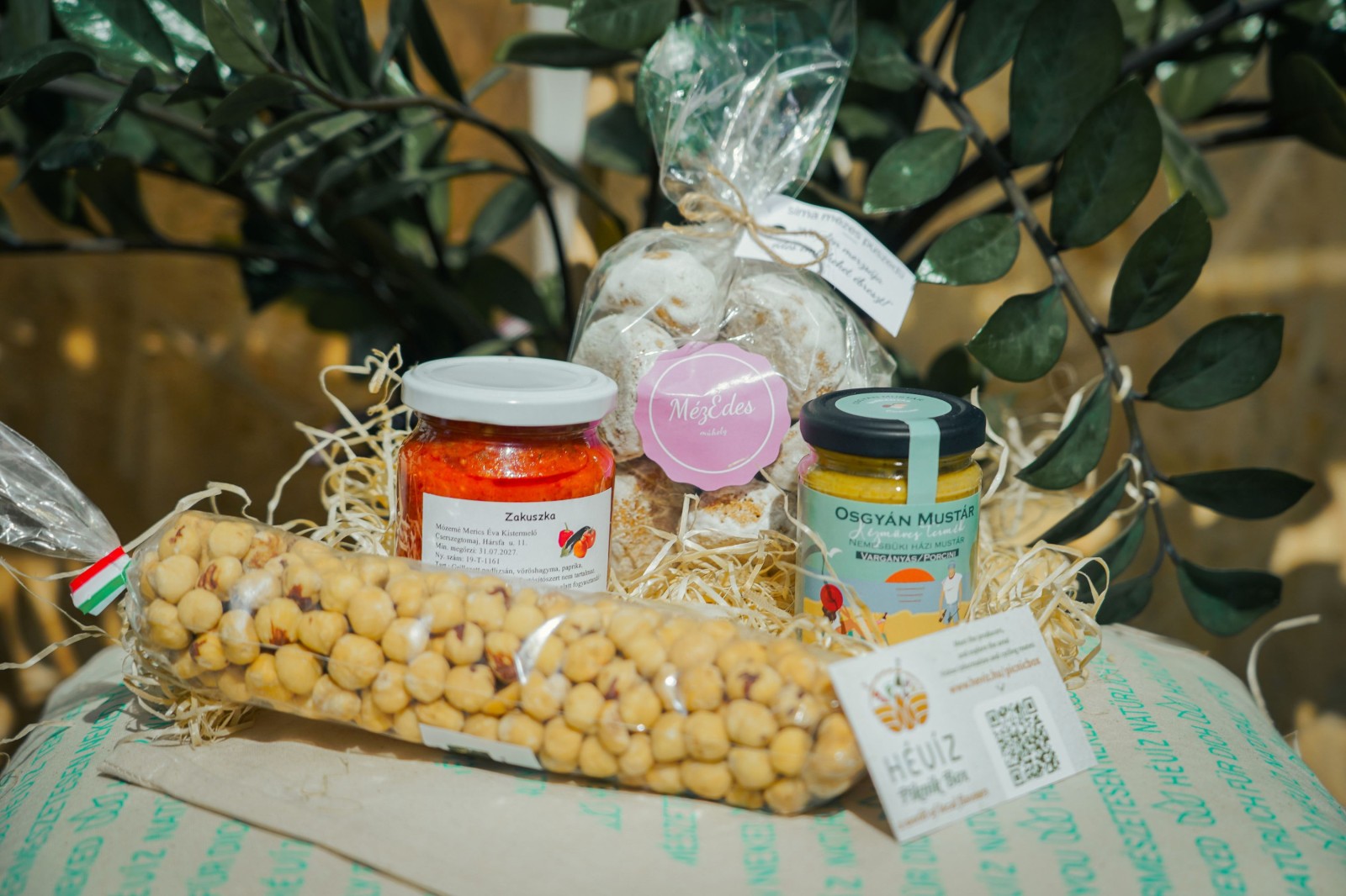 Die Hévízer Picknick-Box ist eine zusammengestellte Auswahl lokaler Köstlichkeiten, die sich leicht für einen Ausflug ins Freie mitnehmen lässt. Es geht nicht um die Vorbereitung, sondern darum, gute Geschmäcker mühelos mit Zeit in der Natur zu verbinden. Ob am See oder im Wald, zu zweit oder mit der Familie – jeder findet etwas nach seinem Geschmack. Die entspannte Atmosphäre entsteht durch die Kombination von Umgebung und Speisen und hilft, dem Alltag zu entkommen. Sie lässt sich auch gut mit einem Spaziergang oder anderen Outdoor-Aktivitäten verbinden, sodass der Tag in einem natürlichen, ausgewogenen Rhythmus verläuft. Auch zu Hause kann sie eine gewöhnliche Mahlzeit oder einen Abend in etwas Festlicheres verwandeln und die Atmosphäre eines kleinen Ausflugs in den Alltag bringen.