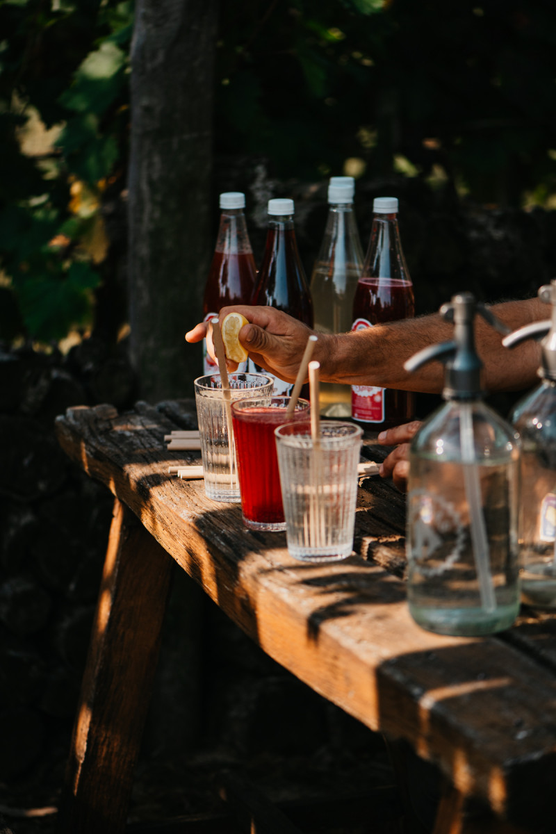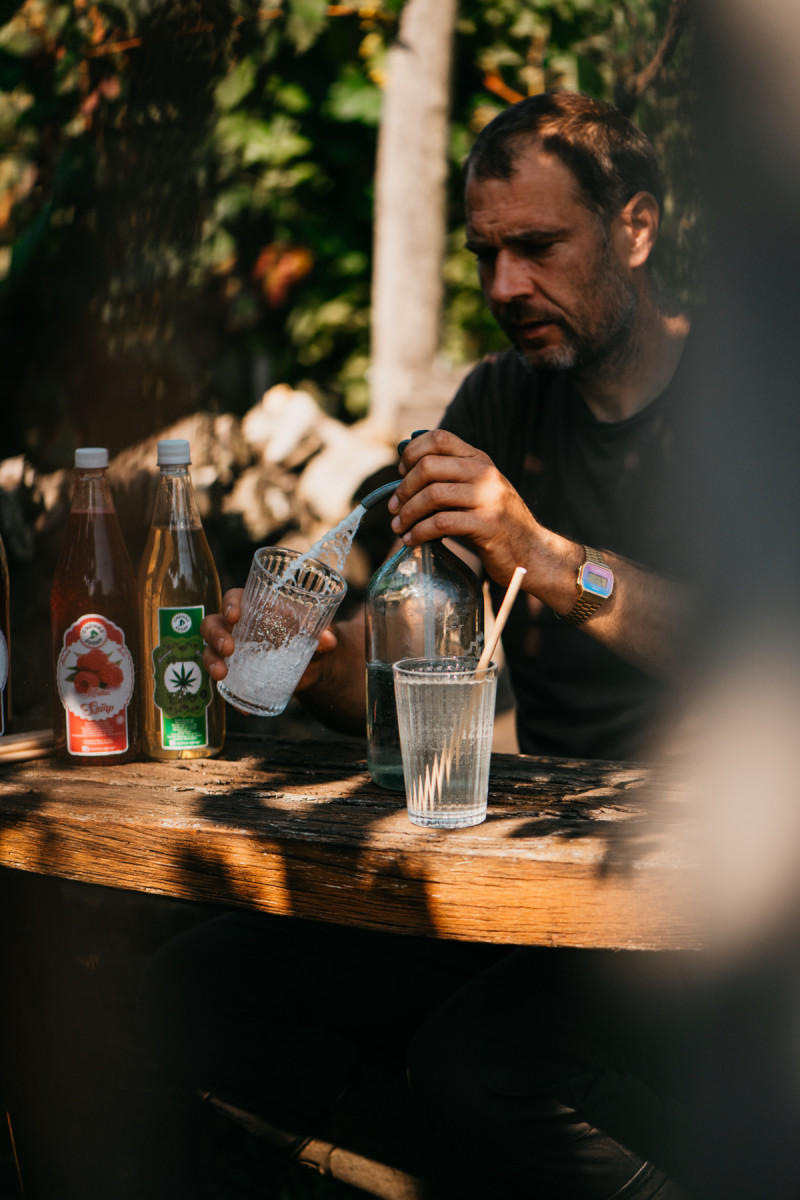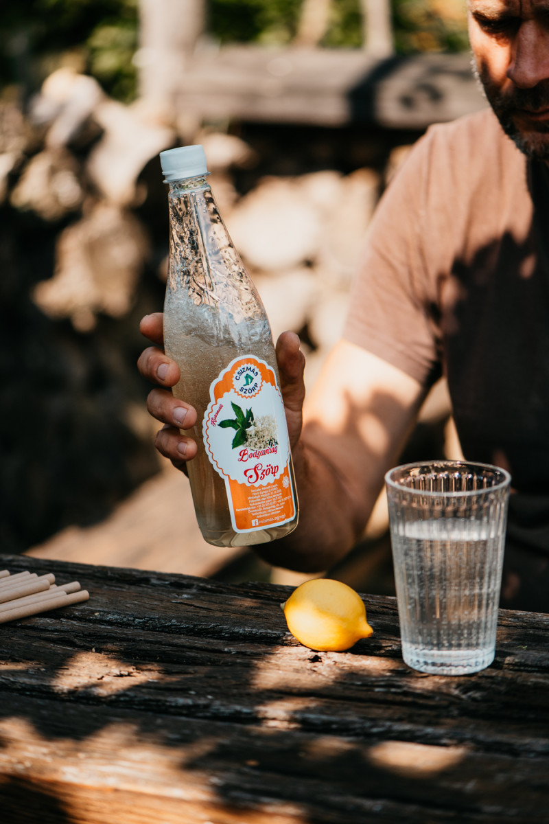 Since its founding in 2018, Csizmás Syrup has followed one simple principle: only bottle what László himself would happily consume. Most of the ingredients come from family production: raspberries, strawberries, and sour cherries are grown in Pankasz, Vas County. Elderflowers are foraged by László himself each May, far from roads and pollution. Hemp is grown right behind his workshop on the Egregyi Wine Hill.