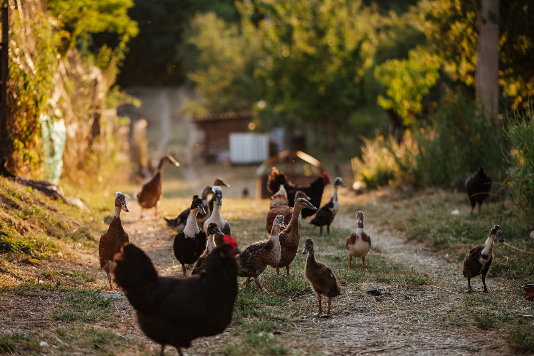 For pest and disease management, she relies on natural methods: companion planting, insect netting, and biological solutions. Ducks and chickens happily assist by controlling snails and pests — no chemicals involved.