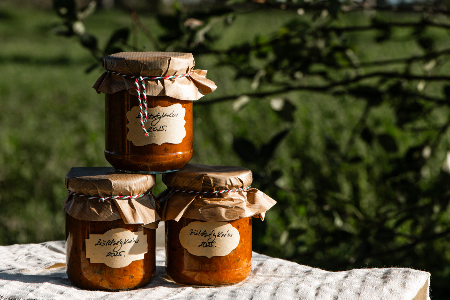 Drying herbs on the terrace, ripe tomatoes in the greenhouse, the scent of fresh jam in the kitchen — Dédi nyomában Biogarden started as a self-sufficiency project, a lifestyle choice rooted in a close connection to nature. It’s a small homestead where everything is made from what the garden yields, just a little more than you would preserve for yourself. And what will you find on the pantry shelves? Vegetable spreads, pickled vegetables, mixed salads, jams, and syrups for sure.
