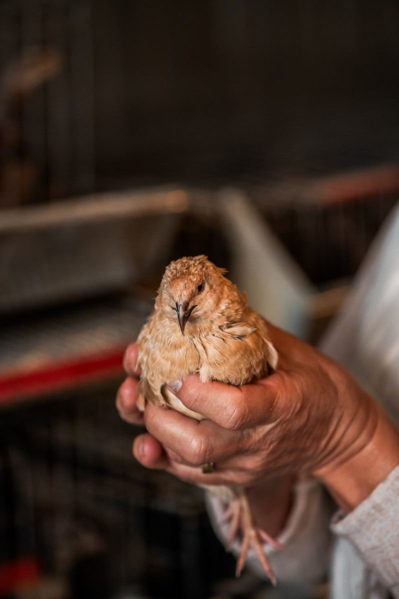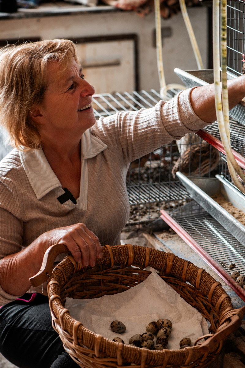 Today, she and her daughter care for several hundred quails, providing them with fresh water and high-quality feed daily. From the start, Margit has avoided industrial feeds, sourcing natural grains — corn, wheat, barley, peas, soy — from a nearby farm. This ensures the quails remain healthy and their eggs retain a rich, characteristic flavor.
