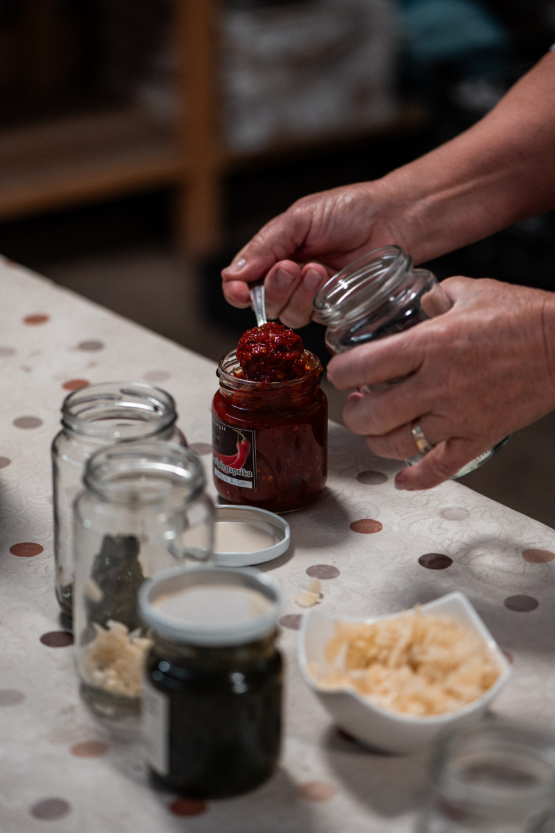 Customers often suggest new flavor ideas, which Margit gladly tries to bring to life. While the smoked quail eggs are the flagship product, Margit also makes wild garlic pesto, sweet and spicy paprika creams from homegrown vegetables, and fruit-based jams and syrups.
