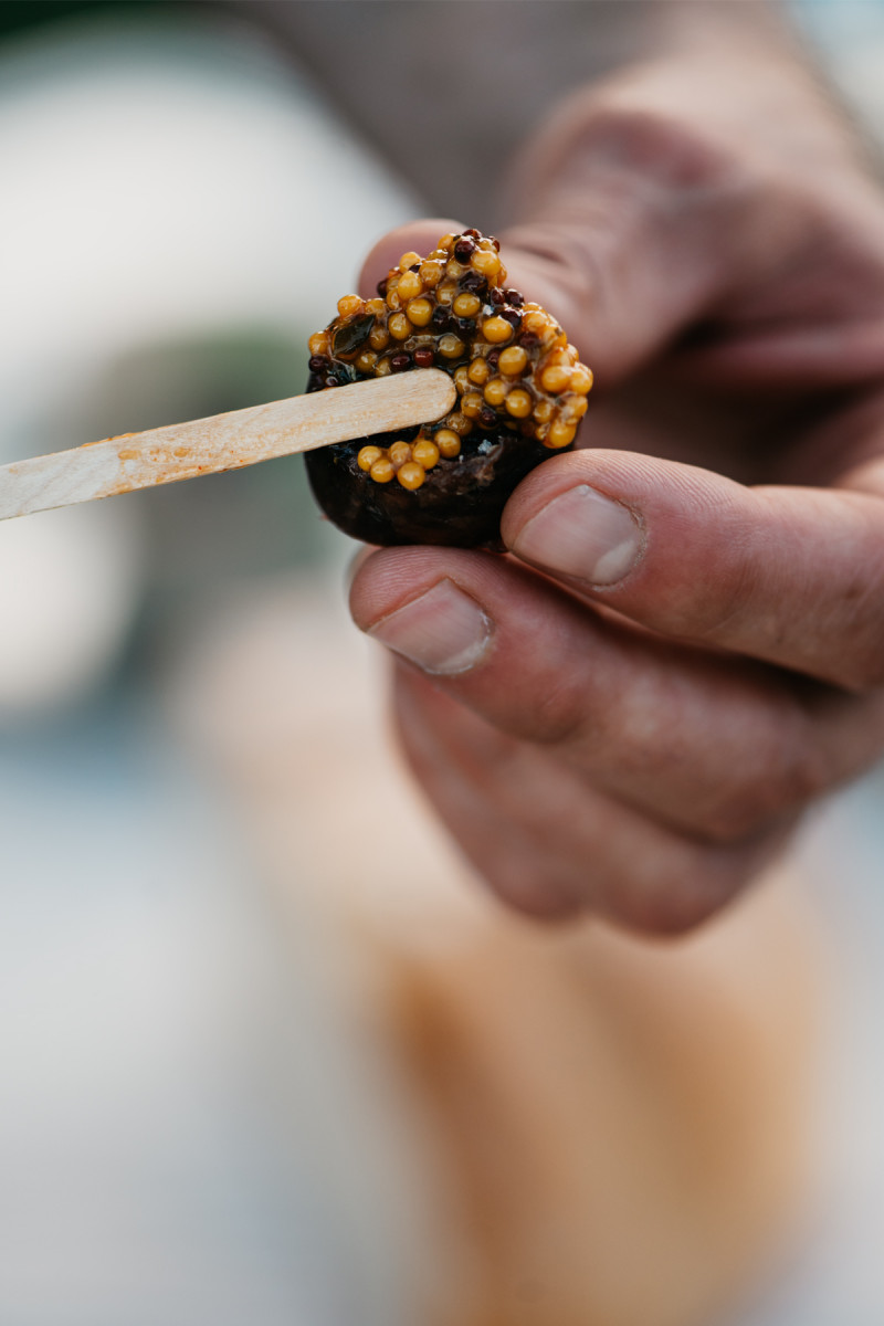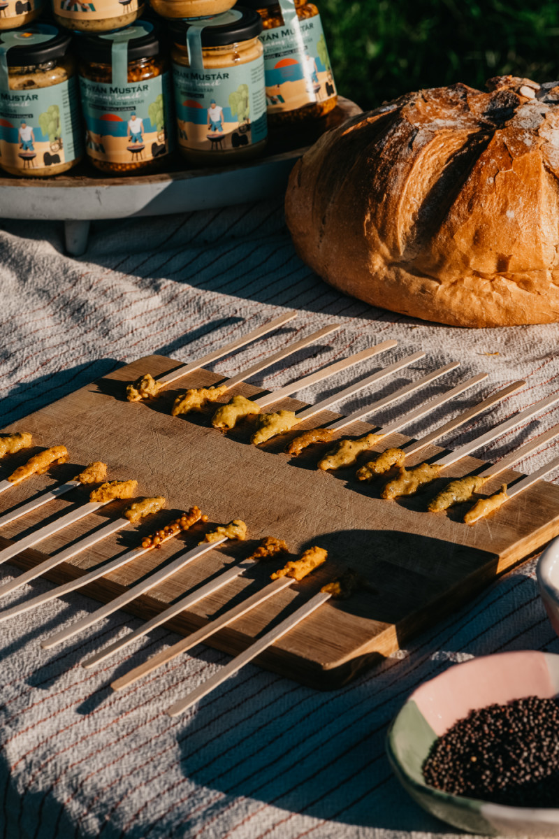 Some specialty ingredients, like anchovies, are imported but chosen with strict quality standards. Part of the mustard seed supply comes from László’s own fields in Szolnok, Eastern Hungary — the perfect environment for growing mustard. He uses a traditional Hungarian yellow mustard variety for an authentic taste.