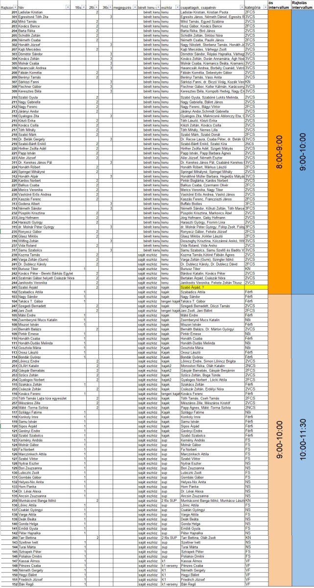 - a kiszállónál a saját vízi eszközök őrzését a verseny végéig