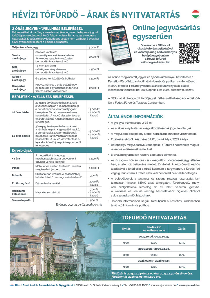 Fedett Fürdő információ: +36 83 501 700/167, fedettinfo@spaheviz.hu