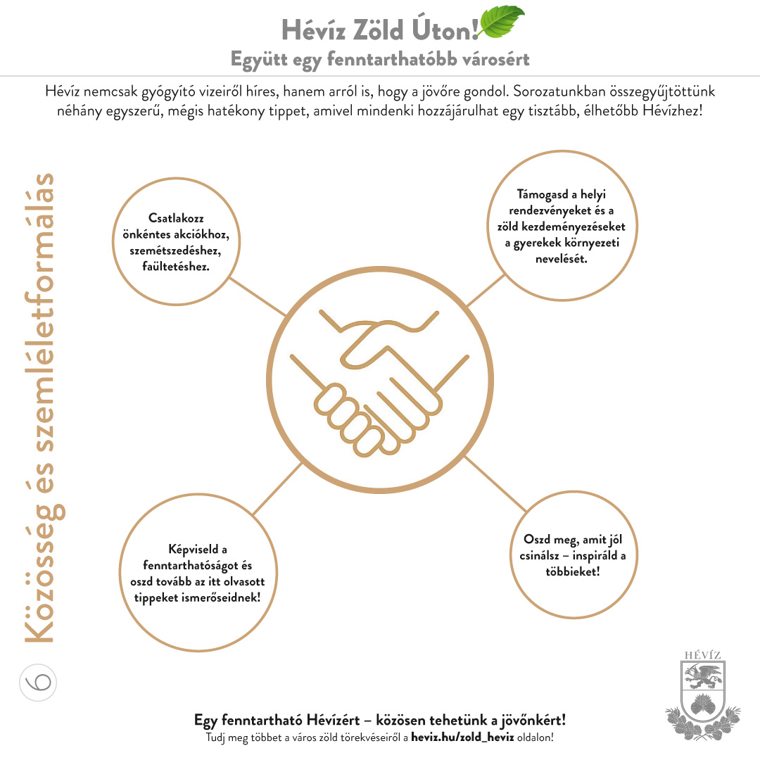 Újabb lépés a zöld jövő felé: elkészült a Hévíz Zöld Úton! című szemléletformáló kiadvány, amely hat tematikus ábrán keresztül mutatja be, hogyan tehetünk mindannyian a környezetünk megóvásáért.