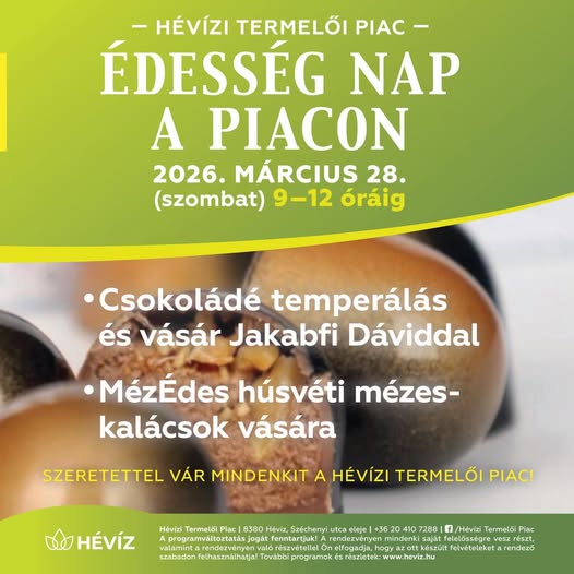 A Hévízi Termelői Piacon az édesszájúakat különleges programok várják: betekintést nyerhetsz a csokoládé temperálás fortélyaiba, miközben helyben készült, ünnepi mézeskalácsok és kézműves finomságok közül válogathatsz. A húsvéti hangulatot ízek, illatok és látványos bemutatók teszik teljessé.