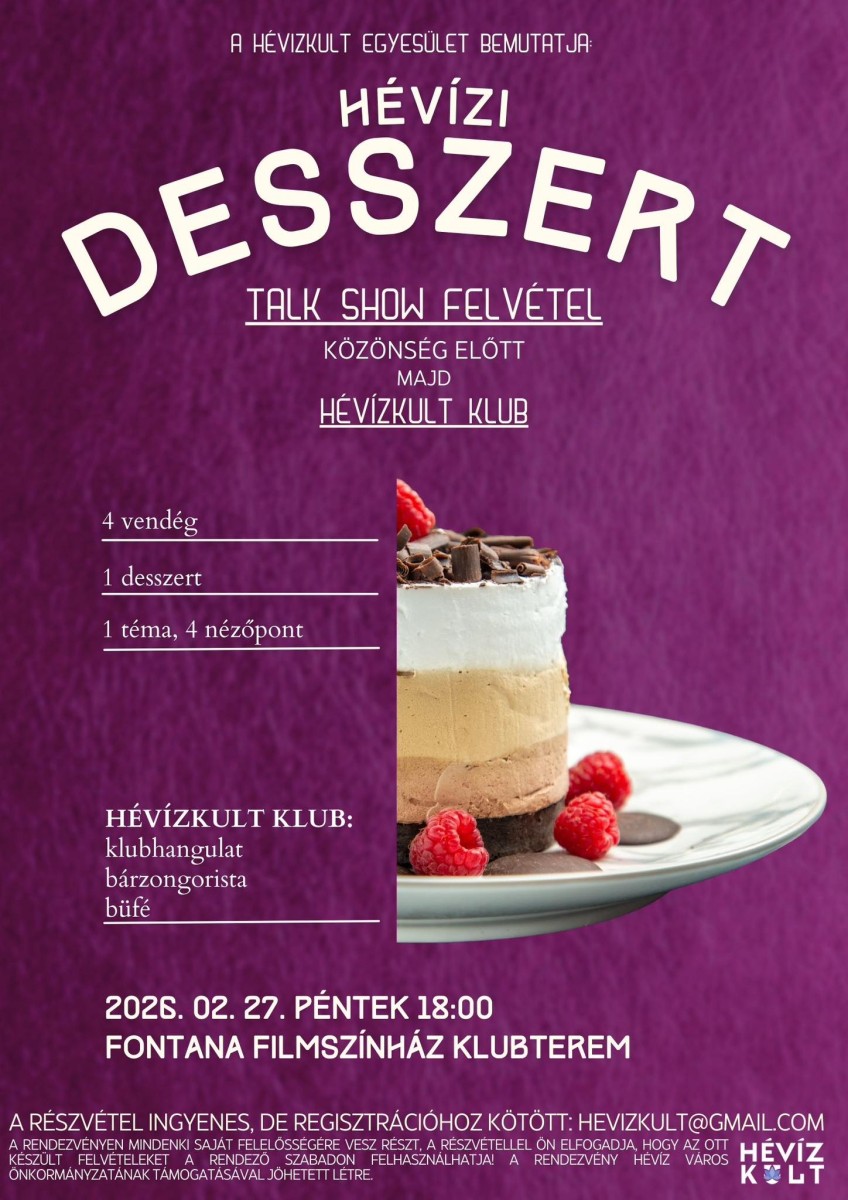 A Hévízi Desszert talk show felvételén négy vendég osztja meg nézőpontját egy közös témáról – őszintén, inspirálóan, olykor vitázva, de mindig ízesen.